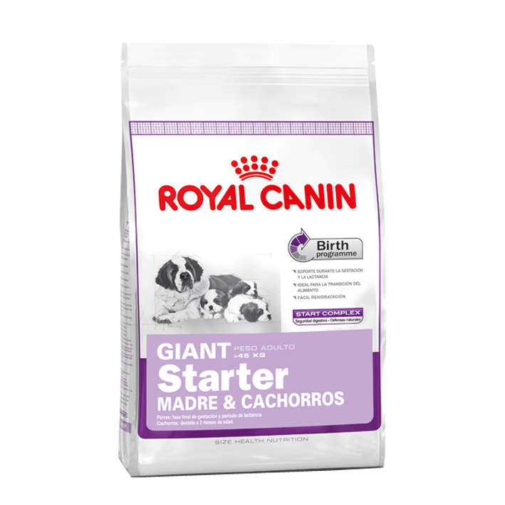 Alimento completo para madres de raza gigante (>45 kg) y sus cachorros: madres en la fase final de gestación y en periodo de lactancia / Cachorros en periodo de destete hasta los 2 meses de edad.