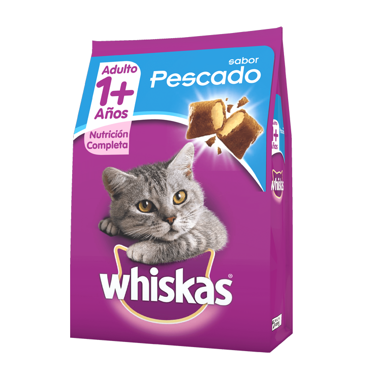 Whiskas® ADULTO 1+ (a partir del año) Sabor PESCADO. Más sabor con relleno más cremoso para satisfacer el exigente paladar de los felinos. Sabor inigualable con todos los nutrientes necesarios para una alimentación 100% completa y saludable. BALANCE IDEAL DE MINERALES Y CONTROL DEL PH URINARIO: salud y vitalidad para su gato. AYUDA A MANTENER LA SALUD DE LA PIEL Y EL PELO: fórmula con Zinc y Omega 6. VIDA SALUDABLE: contiene antioxidantes esenciales Taurina y Vitamina E.