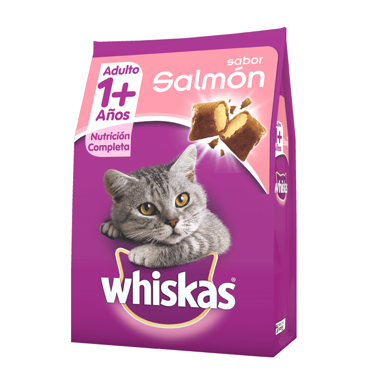 Whiskas® ADULTO 1+ (a partir del año) Sabor SALMÓN. Más sabor con relleno más cremoso para satisfacer el exigente paladar de los felinos. Sabor inigualable con todos los nutrientes necesarios para una alimentación 100% completa y saludable. BALANCE IDEAL DE MINERALES Y CONTROL DEL PH URINARIO: salud y vitalidad para su gato. AYUDA A MANTENER LA SALUD DE LA PIEL Y EL PELO: fórmula con Zinc y Omega 6. VIDA SALUDABLE: contiene antioxidantes esenciales Taurina y Vitamina E.